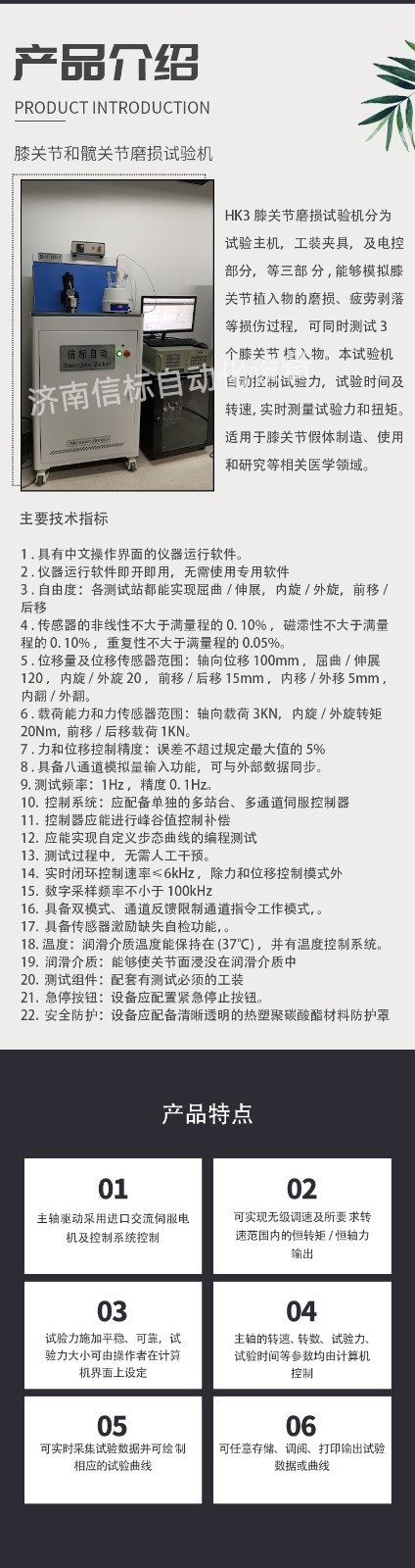 濟(jì)南信標(biāo)自動(dòng)化設(shè)備有限公司主要生產(chǎn):動(dòng)靜態(tài)萬(wàn)能疲勞試驗(yàn)機(jī),接骨板彎曲試驗(yàn)機(jī),縫合線拉伸疲勞試驗(yàn)機(jī),髖膝關(guān)節(jié)磨損試驗(yàn)機(jī),電子萬(wàn)能試驗(yàn)機(jī)、液壓萬(wàn)能試驗(yàn)機(jī)、巖石三軸、四軸,電液拉力試驗(yàn)機(jī),材料試驗(yàn)機(jī),高低溫蠕變,高低頻疲勞,拉伸、扭轉(zhuǎn)、杯突等二十多個(gè)系列兩千多個(gè)的品種。