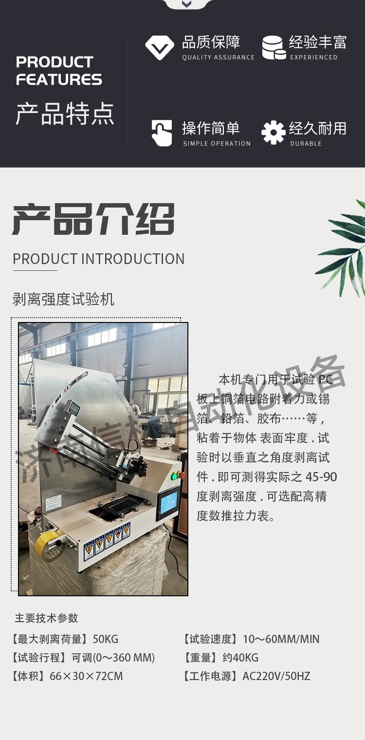 試用范圍:本機專門用于試驗PC板上銅箔電路附著力或錫箔、鉛箔、膠布……等,粘著于物體 表面牢度.試驗時以垂直之角度剝離試件.即可測得實際之45-90度剝離強度.可選配高精度數(shù)推拉力表。