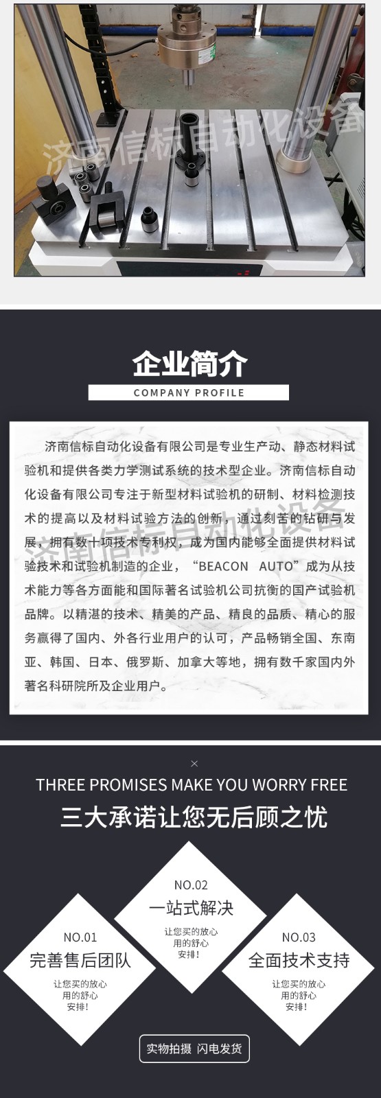 濟(jì)南信標(biāo)自動(dòng)化設(shè)備有限公司主要生產(chǎn):動(dòng)靜態(tài)萬能疲勞試驗(yàn)機(jī),接骨板彎曲試驗(yàn)機(jī),縫合線拉伸疲勞試驗(yàn)機(jī),髖膝關(guān)節(jié)磨損試驗(yàn)機(jī),電子萬能試驗(yàn)機(jī)、液壓萬能試驗(yàn)機(jī)、巖石三軸、四軸,電液拉力試驗(yàn)機(jī),材料試驗(yàn)機(jī),高低溫蠕變,高低頻疲勞,拉伸、扭轉(zhuǎn)、杯突等二十多個(gè)系列兩千多個(gè)的品種。
